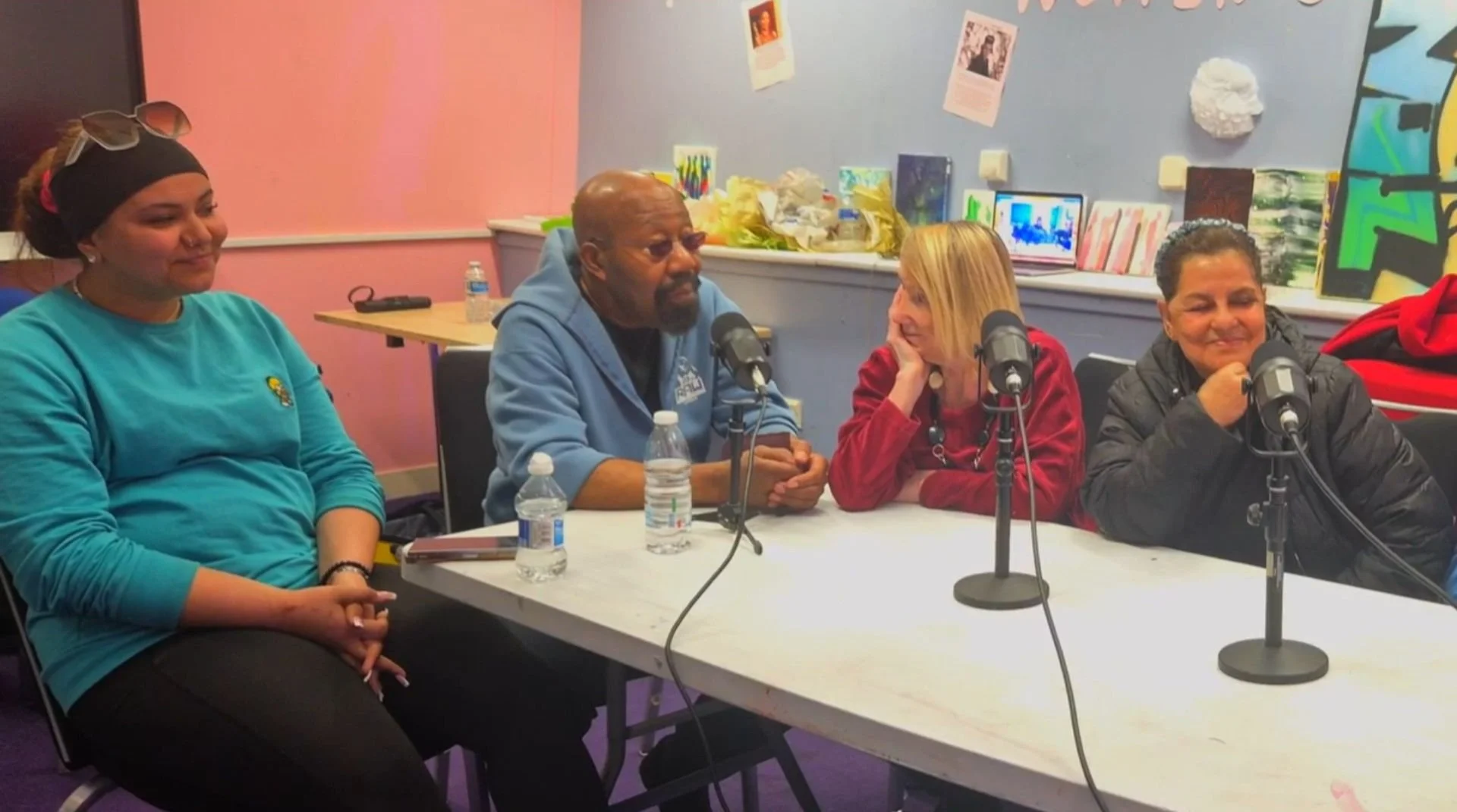 Active discussion within one of the podcast recording sessions